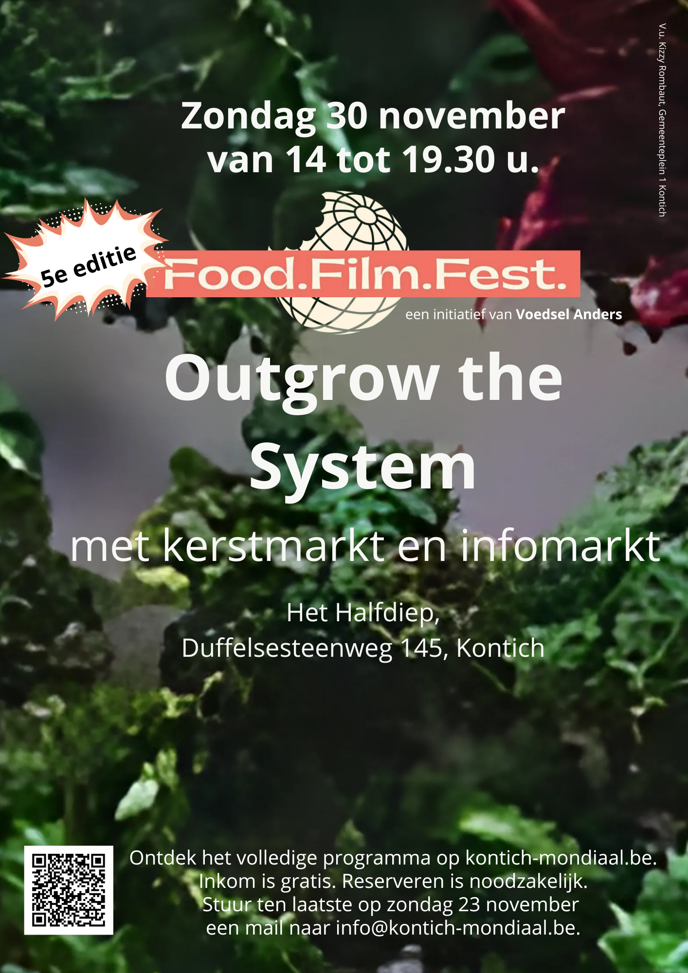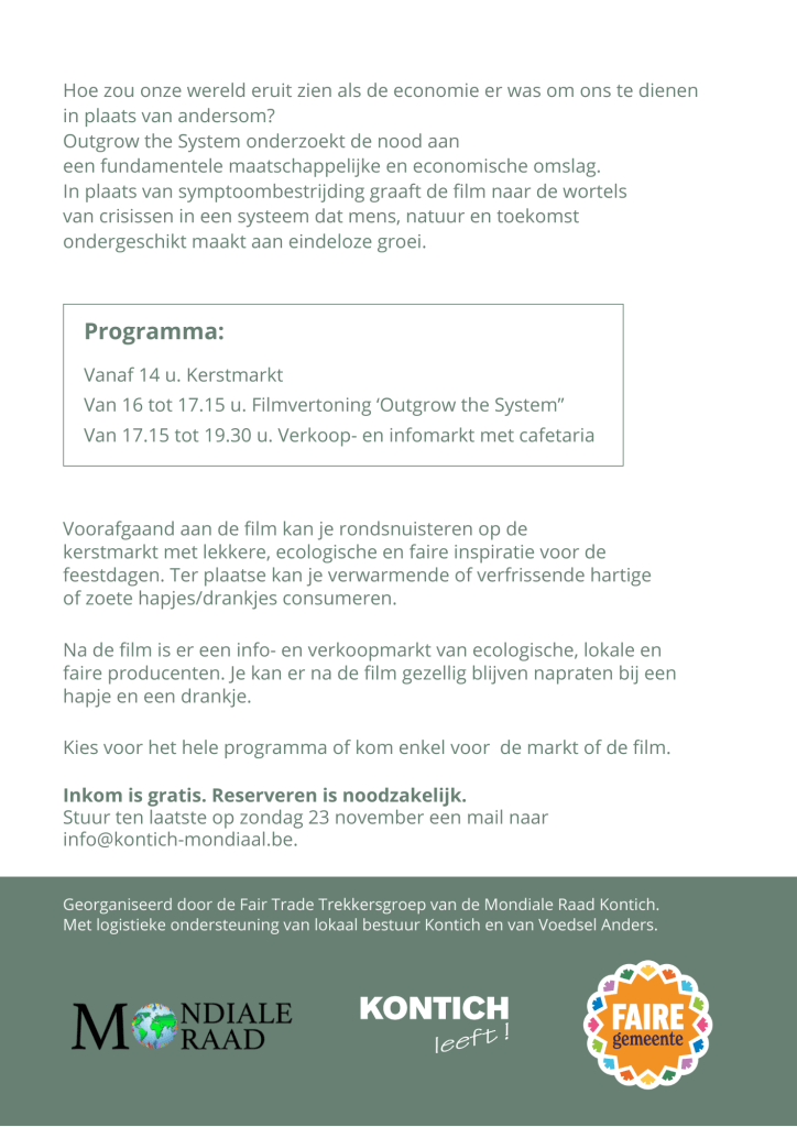 👉🏻 op zondag 30 november gaat het Food.Film.Fest door in Het Halfdiep aan het zwembad. Dit word georganiseerd door de mondiale raad waar ook medebuurtbewoners uit Kontich Kazerne in actief zijn. Alle info kan je hier terugvinden. Als je al weet dat je gaat, vragen ze om organisatorische redenen om in te schrijven voor 23 november en je krijgt er dan nog een drankje bovenop.